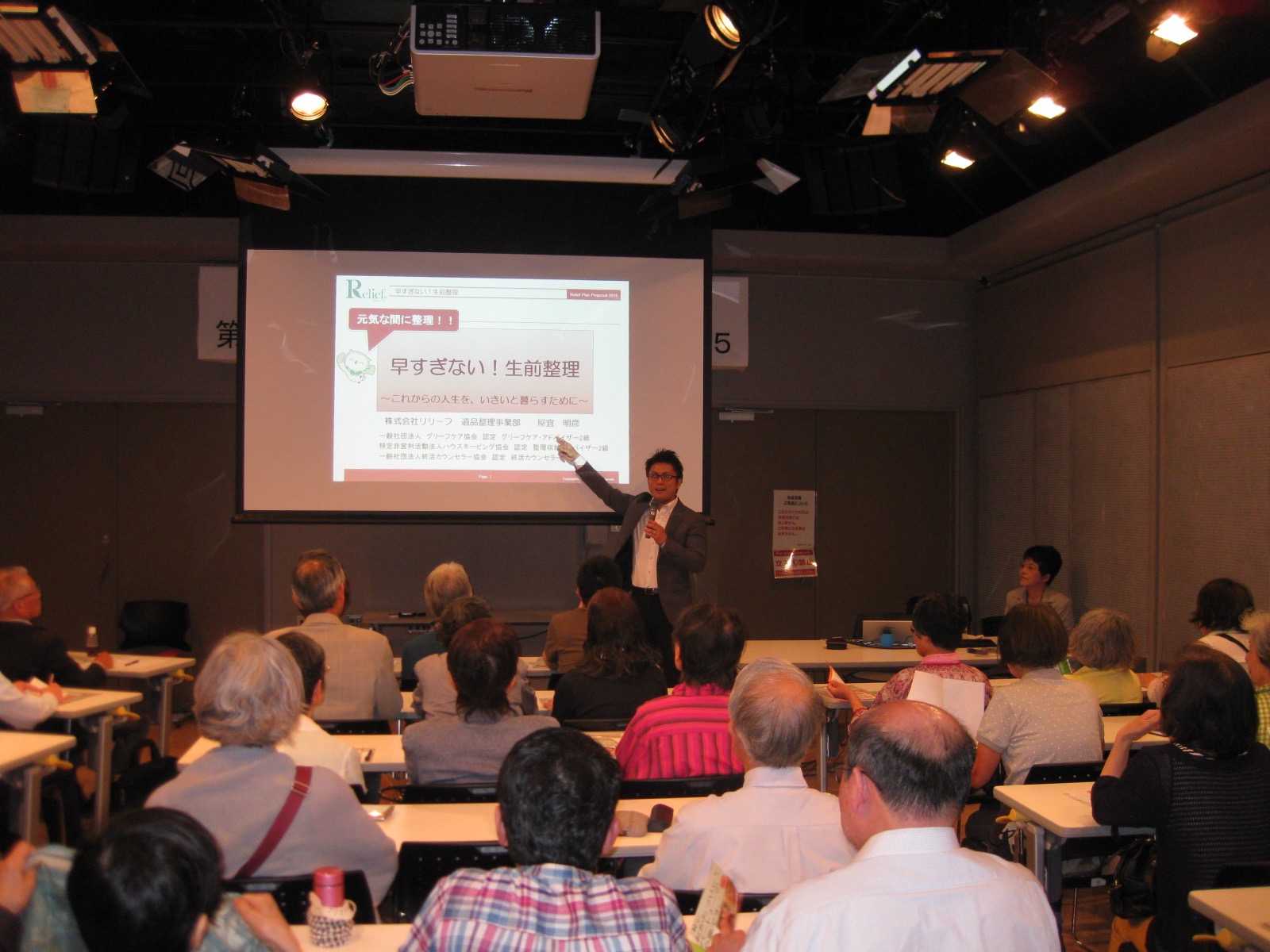 2015年度フォーラムは株式会社リリーフの屋宜さんを講師にお迎えし、「遺品整理」「生前整理」についてお話しいただきました。